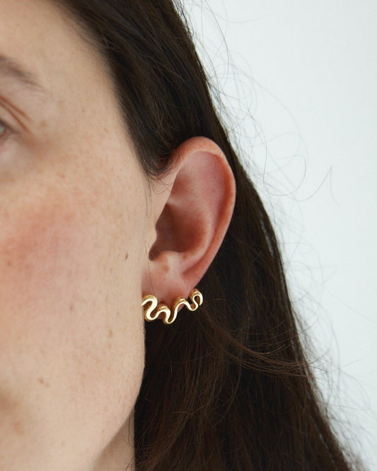 Sculptural and sustainable earrings in fine metal, designed to stand out. All of our jewelry is locally produced in Norway, from recycled silver and 24k gold-plated silver.